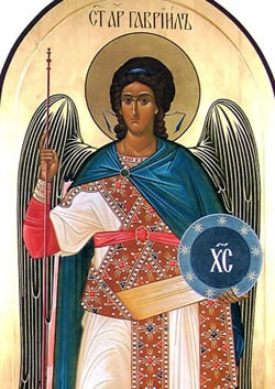 Τό ὄνομα Γαβριήλ σημαίνει τήν ἰσχύ τοῦ Θεοῦ. Ὁ Ἄρχων Γαβριήλ εἶναι ἕνας ἐκ τῶν τριῶν Ἀγγέλων πού ἀναφέρονται στήν Ἁγία Γραφή. Ἀπεστάλη ἀπό τόν Θεό στόν Ζαχαρία, γιά νά τοῦ ἀναγγείλει τήν γέννηση τοῦ Ἰωάννου τοῦ Προδρόμου, στήν Παρθένο Μαριάμ, γιά νά τήν χαιρετίσει καί νά φέρει τό μήνυμα τῆς ἐπικείμενης γέννησης τοῦ Λυτρωτοῦ καί στόν Προφήτη Δανιήλ, γιά νά ἐξηγήσει τά ὁράματα τά ὁποῖα εἶχε δεῖ αὐτός καί νά ἀποκαλύψει τόν χρόνο τῆς ἐλεύσεως τοῦ Μεσσία. Ἡ Ἐκκλησία τιμᾶ τήν Σύναξη τοῦ Ἀρχαγγέλου Γαβριήλ, ἐπειδή προανήγγειλε τή Σάρκωση τοῦ Υἱοῦ καί Λόγου τοῦ Θεοῦ.